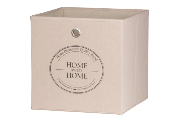 Úložný látkový box s potištěným motivem nápisů Sweet Home poslouží jako praktická součást regálu anebo vnitřního vybavení skříněk, případně ho můžete umístit samostatně. Jeho konstrukci lze kdykoliv snadno složit a uschovat.