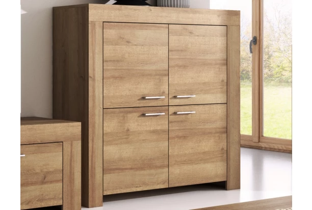 Úložná skříňka z programu Sky – nábytek s optikou širokých rámů je vyroben v dřevodekoru dub riviera a vytvoří v každém interieru útulnou domáckou atmosféru.