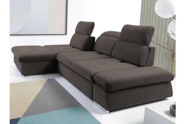 Komfortní rohová sedací souprava s otomanem vlevo zaujme moderním zaobleným designem. Největší předností jsou funkce polohování sedačky – díky nim si snadno přizpůsobíte každodenní pohodlí podle vaší aktuální potřeby. Oblíbíte si funkce polohování sedáku, polohování horních opěrek a polohování bočních područek. Rozkládací funkci na lůžko nebo úložný prostor naopak oceníte kvůli praktičnosti. Sedačka je očalouněna odolnou látkou v barvě hnědá, která je velmi příjemná na dotek.
