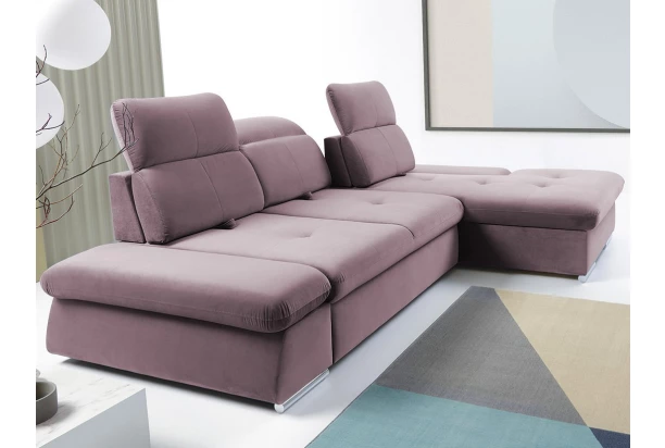 Komfortní rohová sedací souprava s otomanem vpravo zaujme moderním zaobleným designem. Největší předností jsou funkce polohování sedačky – díky nim si snadno přizpůsobíte každodenní pohodlí podle vaší aktuální potřeby. Oblíbíte si funkce polohování sedáku, polohování horních opěrek a polohování bočních područek. Rozkládací funkci na lůžko nebo úložný prostor naopak oceníte kvůli praktičnosti. Sedačka je očalouněna odolnou látkou v barvě růžová, která je velmi příjemná na dotek.