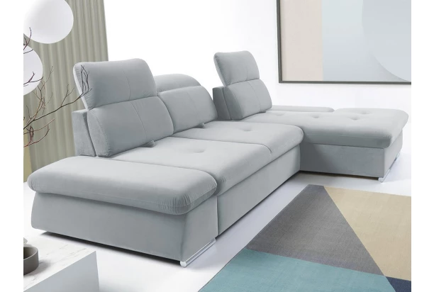 Komfortní rohová sedací souprava s otomanem vpravo zaujme moderním zaobleným designem. Největší předností jsou funkce polohování sedačky – díky nim si snadno přizpůsobíte každodenní pohodlí podle vaší aktuální potřeby. Oblíbíte si funkce polohování sedáku, polohování horních opěrek a polohování bočních područek. Rozkládací funkci na lůžko nebo úložný prostor naopak oceníte kvůli praktičnosti. Sedačka je očalouněna odolnou látkou v barvě světle šedá, která je velmi příjemná na dotek.