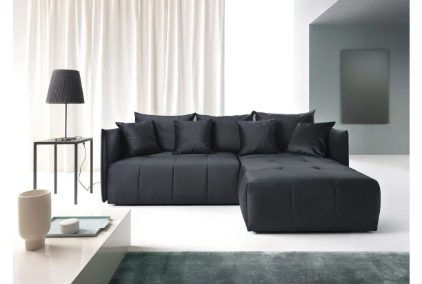 Rohová sedací souprava s atraktivním proševem a mnoha polštáři působí útulně. Očalouněna kvalitní látkou v lesklé optice šedo-antracitového sametu. Rozměrově ideální téměř do každého prostoru. Sami si určíte, zda chcete umístít otoman na pravou nebo levou stranu sedačky. Včetně praktické rozkládací funkce na lůžko i úložného prostoru pod sedákem.