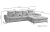 - rohový půdorys – sedací soupravu lze univerzálně smontovat jako pravý nebo levý roh (s otomanem umístěným na pravé nebo levé straně)
