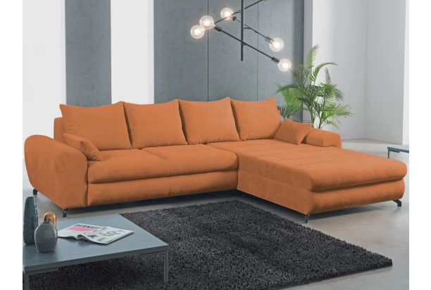 Atraktivní rohová sedací souprava se zaoblenými tvary nabízí příjemně měkký styl sezení pro Váš každodenní komfort. Očalouněna látkou v barvě cihlová oranžová. Další přidanou hodnotou je praktický úložný prostor a navíc rozkládací funkce – díky ní se sedačka snadno promění na příležitostné lůžko třeba pro návštěvu. Díky univerzálně řešené konstrukci lze sedačku sestavit jako pravý anebo levý roh, respektive s otomanem na pravé anebo levé straně – sedačka se tak lépe přizpůsobí prostorovým možnostem Vašeho obýváku.