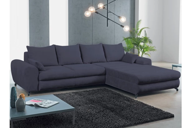 Atraktivní rohová sedací souprava se zaoblenými tvary nabízí příjemně měkký styl sezení pro Váš každodenní komfort. Očalouněna látkou v barvě švestková tmavě modrá. Další přidanou hodnotou je praktický úložný prostor a navíc rozkládací funkce – díky ní se sedačka snadno promění na příležitostné lůžko třeba pro návštěvu. Díky univerzálně řešené konstrukci lze sedačku sestavit jako pravý anebo levý roh, respektive s otomanem na pravé anebo levé straně – sedačka se tak lépe přizpůsobí prostorovým možnostem Vašeho obýváku.