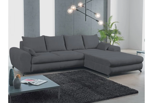 Atraktivní rohová sedací souprava se zaoblenými tvary nabízí příjemně měkký styl sezení pro Váš každodenní komfort. Očalouněna látkou v barvě tmavě šedá. Další přidanou hodnotou je praktický úložný prostor a navíc rozkládací funkce – díky ní se sedačka snadno promění na příležitostné lůžko třeba pro návštěvu. Díky univerzálně řešené konstrukci lze sedačku sestavit jako pravý anebo levý roh, respektive s otomanem na pravé anebo levé straně – sedačka se tak lépe přizpůsobí prostorovým možnostem Vašeho obýváku.