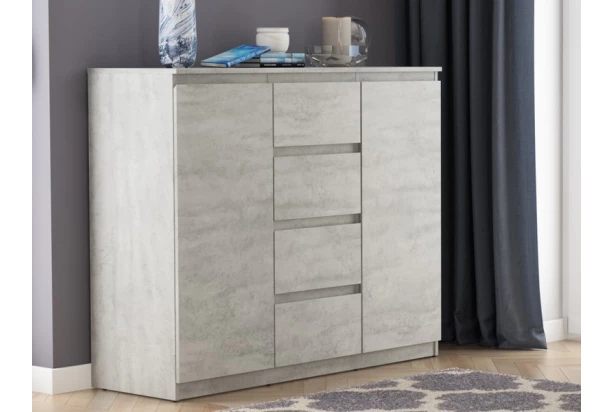 Široká komoda se 4 zásuvkami Carlos, šedý beton, 120 cm