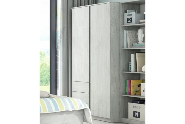 Šatní skříň o šířce 100 cm v imitaci šedého betonu nabízí praktické úložné prostory, účelnost a čisté linie tvarů, které se hodí do každého interieru.
