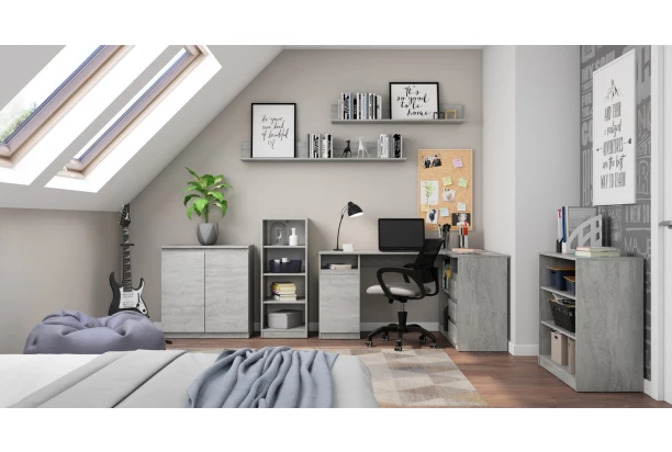 Skříňka 2-dveřová o šířce 75 cm v imitaci šedý beton nabízí praktické úložné prostory, účelnost a čisté linie tvarů, které se hodí do každého interieru.