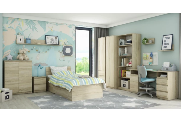Postel o rozměru lůžka 90×200 cm v dekoru dub sonoma nabízí praktické úložné zásuvky, účelnost a čisté linie tvarů, které se hodí do každého interieru.