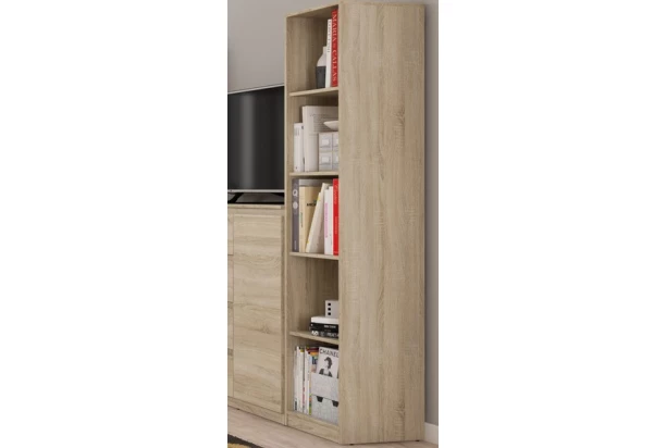Vysoký regál o šířce 40 cm v dekoru dub sonoma nabízí praktické úložné prostory, účelnost a čisté linie tvarů, které se hodí do každého interieru. Police lze výškově nastavovat.