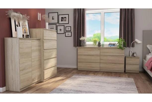 Skříňka/noční stolek se 2 zásuvkami v dekoru dub sonoma nabízí praktické úložné prostory, účelnost a čisté linie tvarů, které se hodí do každého interieru.