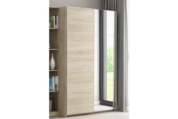 Šatní skříň o šířce 150 cm se 2 posuvnými dveřmi v dekoru dub sonoma nabízí praktické úložné prostory, účelnost a čisté linie tvarů, které se hodí do každého interieru.