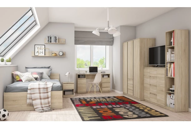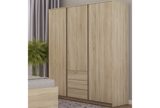 Šatní skříň o šířce 152 cm v dekoru dub sonoma nabízí praktické úložné prostory, účelnost a čisté linie tvarů, které se hodí do každého interieru.