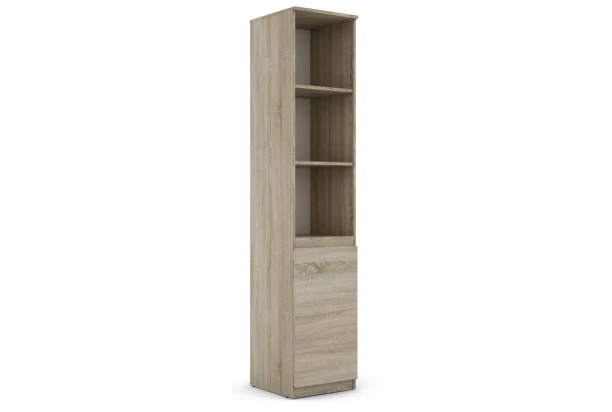 Úzký regál s dvířky o šířce 40 cm v dekoru dub sonoma nabízí praktické úložné prostory, účelnost a čisté linie tvarů, které se hodí do každého interieru. Odkládací police jsou ideální pro vystavení knih, dekorací a dalších předmětů. Za otočnými dvířky se skrývá praktický úložný prostor s policí, který vám pomůže udržet pořádek v domácnosti.