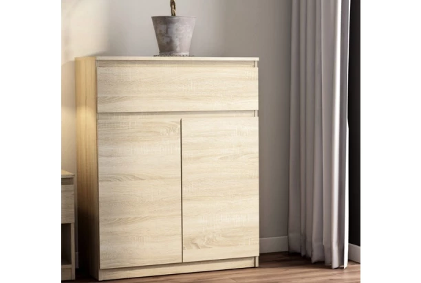 Skříňka se šuplíkem o šířce 80 cm v dekoru dub sonoma nabízí praktické úložné prostory, účelnost a čisté linie tvarů, které se hodí do každého interieru.