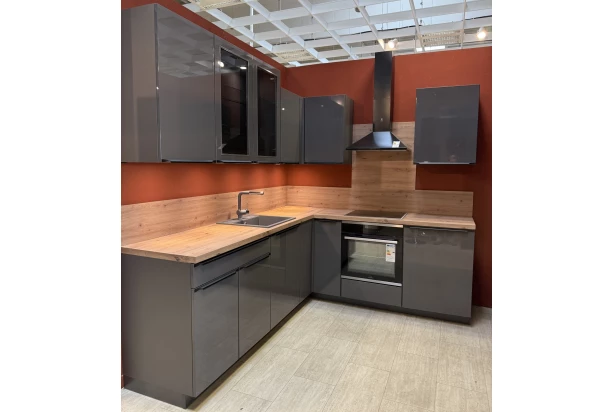 Kompletní sestava kuchyně Flash – extra výhodný výprodej vystaveného zboží z prodejny Znojmo. V barvě břidlicově šedá lesk.