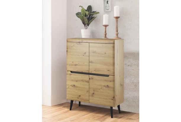 Úložná skříňka z kolekce Nordi – inspirujte se útulným severským stylem. Moderní nábytek se zaoblenými hranami doplňují masivní dřevěné nožky, které dodávají interieru lehkost a svěží vzhled. Teplé tóny dřevodekoru podkreslují tmavé čelní linie, díky kterým nábytek svěle vynikne.