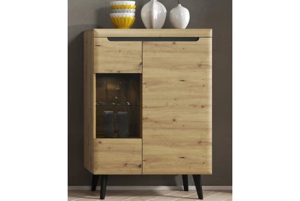 Nízká vitrína z kolekce Nordi – inspirujte se útulným severským stylem. Moderní nábytek se zaoblenými hranami doplňují masivní dřevěné nožky, které dodávají interieru lehkost a svěží vzhled. Teplé tóny dřevodekoru podkreslují tmavé čelní linie, díky kterým nábytek svěle vynikne.