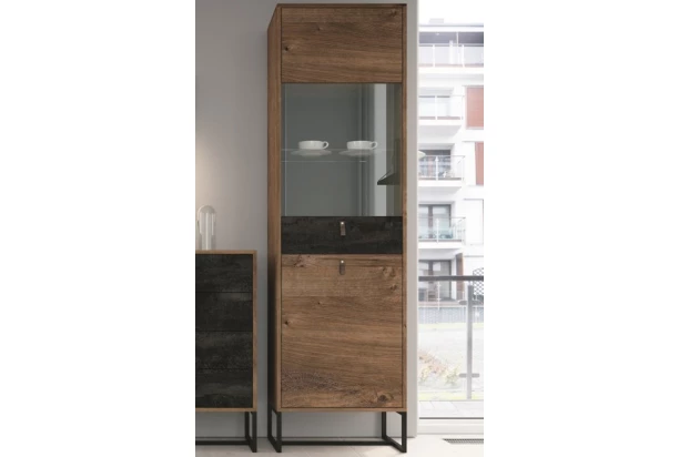 Vysoká vitrína Dark, dub ribbeck/černý kámen