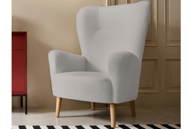 Doplňte si noblesní atmosféru bytu s tímto elegantním křeslem, které skvěle vynikne nejen v prostoru obýváku. Zaoblené tvary, komfortní vypolstrování a vysoký opěrák se postarají o Vaše pohodlí. Křeslo na dřevěných nožkách v odstínu přírodní dub je očalouněno měkoučkou látkou s delším strukturovaným vlasem ve světle šedém odstínu.