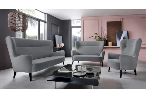Doplňte si noblesní atmosféru bytu s touto elegantní dvoumístnou pohovkou, která skvěle vynikne nejen v prostoru obýváku. Zaoblené tvary, komfortní vypolstrování a vysoký opěrák se postarají o Vaše pohodlí. Dvoumístná pohovka na dřevěných nožkách je očalouněna sametově měkkou látkou v šedém odstínu.