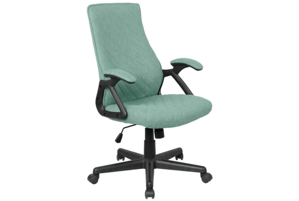 Pohodlně tvarovaná kancelářská židle s loketními opěrkami zaujme zajímavým proševem mentolové potahové tkaniny. Anatomický tvar opěradla poskytuje kvalitní oporu zad. Výškové nastavování doplňuje navíc houpací funkce.