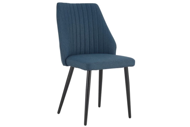 Elegantní jídelní židle na kovových nohách má pohodlně zaoblený design opěradla. Očalouněna látkou v tmavě modrém odstínu a zvýrazněna atraktivním svislým proševem.