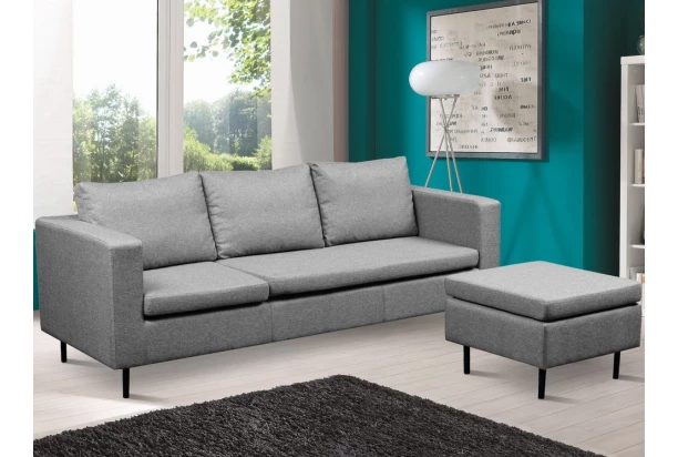 Malá sedací souprava na kovových nohách vyniká maximální variabilitou a lze ji snadno přizpůsobit na míru každé místnosti. Pomocí přístavného taburetu si tak můžete sestavit pravý roh sedačky, levý roh sedačky anebo mít pohovku se samostatným taburetem. Očalouněna látkou v šedé barvě.