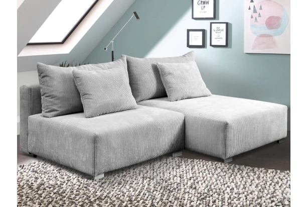 Trendová rohová sedací souprava očalouněna měkoučkou látkou ve světle šedé barvě. Pohodlně měkké sezení doplňují extra velké opěrné polštáře – dopřejte si tak příjemnou domácí pohodu i v menším prostoru vašeho obýváku. Sedačku lze univerzálně sestavit s otomanem umístěným na pravé anebo levé straně, navíc svými kompaktními rozměry je také vhodná do menšího bytu.