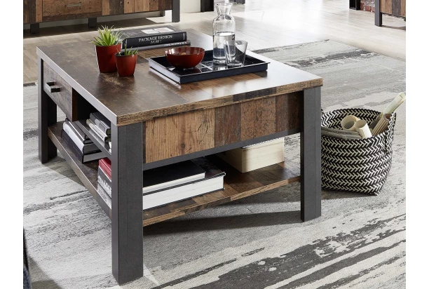 Konferenční stolek z kolekce Cardiff – exkluzivní optika v městském industriálním stylu v kombinaci imitace broušeného kovu s vintage optikou dřevěných prken. Snadno si tak zařídíte interier, který bude nejen praktický, ale i zajímavý na pohled.