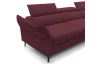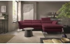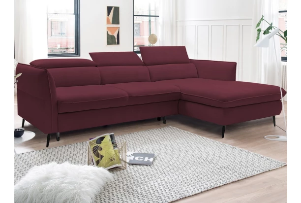 Rohová sedací souprava v trendovém elegantním designu připomíná optiku polštářů. Komfortní sezení doplňují polohovatelné zádové opěrky a nastavitelné boční područky, díky kterým si přizpůsobíte pohodlí podle aktuální potřeby. Sedačka tvořící pravý roh je očalouněna sametově lesklou měkkou látkou v odstínu vínová. Praktickou stránkou je rozkládací funkce na lůžko a úložný prostor, který se vždy hodí.