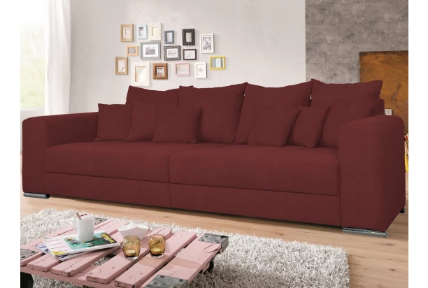 Vychutnejte si skvělou domácí pohodu na široké prostorné pohovce s množstvím polštářů, které Vám poskytnou útulné prostředí během každého dne. Očalouněna příjemně měkkou látkou v odstínu červená a doplněna proševem.