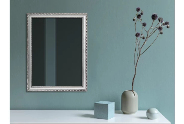 Elegantní nástěnné zrcadlo s dřevěným rámem ve stříbrné barvě je dekorativním i praktickým doplňkem každého interiéru. Snadno zapadne do předsíně, ložnice, obývacího pokoje i koupelny. Kompaktní rozměr 34×45 cm je ideální do menších místností, které opticky zvětší a rozjasní.