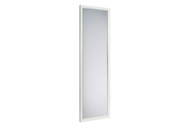 Elegantní nástěnné zrcadlo s dřevěným rámem v bílé barvě je dekorativním i praktickým doplňkem každého interiéru. Snadno zapadne do předsíně, ložnice i obývacího pokoje. Rozměr 35×125 cm.