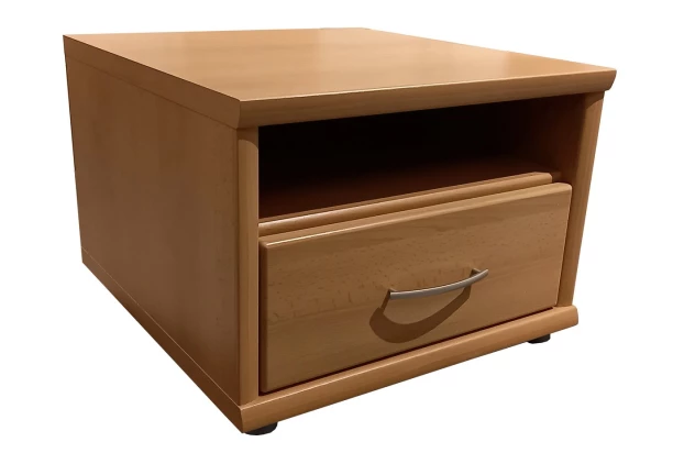 Noční stolek nebo nízká skříňka o šířce 52 cm s přihrádkou a 1 zásuvkou najde využití v každé místnosti bytu, nejen v ložnici. Vyrobena v bukovém dekoru a oceníte kvalitní zpracování.