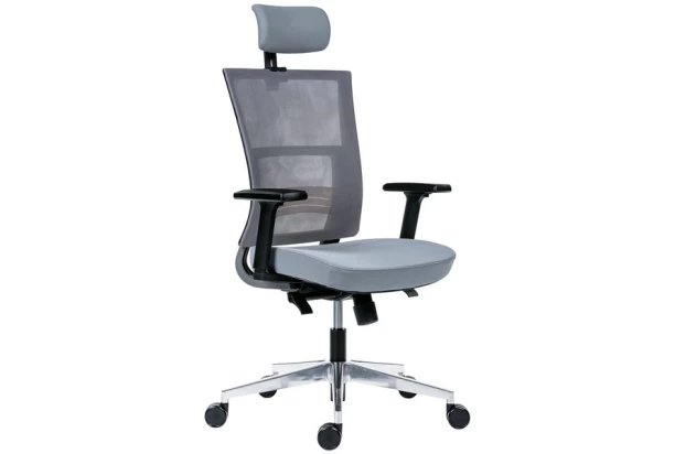 Moderní kancelářské křeslo v šedém provedení pro široké použití v domácím i běžném kancelářském prostředí. Splňuje veškeré požadavky pro plnohodnotné sezení a nabízí vysoký prodyšný opěrák s bederní výztuhou, opěrku hlavy, kvalitní sedák ze studené pěny, synchronní mechanismus s nastavením síly protiváhy a v neposlední řadě i moderní design. Ovládněte tak snadno způsob Vašeho sezení.