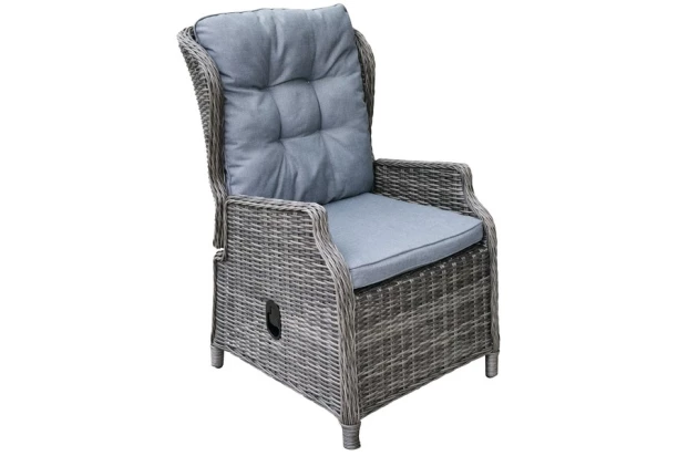 Polohovatelné zahradní křeslo s komfortními polštáři a nastavitelnou polohou opěradla zajistí pohodu kdekoliv na zahradě nebo i v interieru. Vyrobeno v odolné imitaci ratanu.