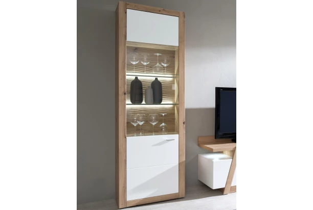 Vysoká vitrína Selma, levá, dub artisan/bílá