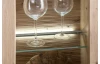 - 1 x levé dveře – částečně prosklenné (úložný prostor/vitráž, 3 x dřevěná police, 2 x čirá skleněná police)