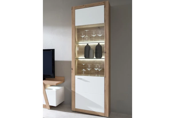 Vysoká vitrína Selma, pravá, dub artisan/bílá