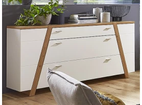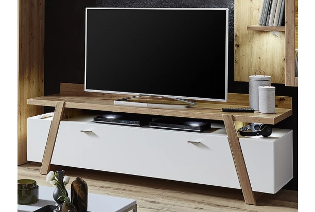 Široká TV skříňka z kolekce Selma je moderní kvalitní nábytek s nádechem útulné tradice dřeva. Zajímavý design podtrhuje široká podnož v optice masivního dřeva. Obsahuje přihrádku pro elektroniku, objemné úložné zásuvky a drobné úložné prostory po stranách.