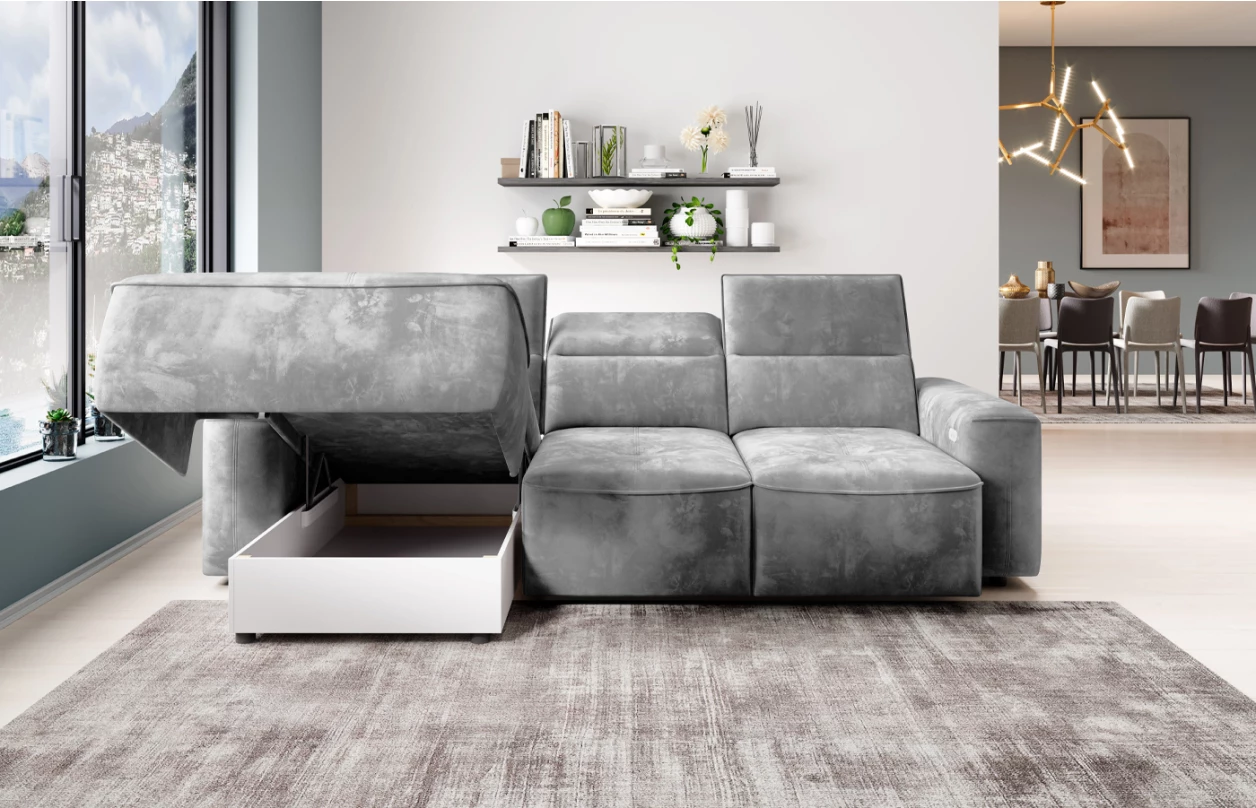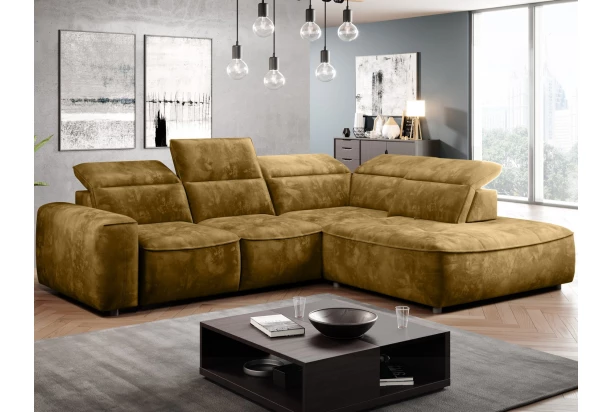 Krásná a prostorná rohová sedací souprava zaujme moderním designem, kvalitním zpracováním i praktickými funkcemi, které vám poskytnou maximum každodenního komfortu a pohodu. Polohovatelné opěrky a úložný prostor navíc doplňuje elektrická funkce výsuvného sedáku, díky níž si snadno nastavíte hloubku sedu až do polohy lůžka pro hosty nebo chvíle relaxace. Očalouněna sametově měkkou látkou ve žlutém odstínu, ta se navíc se vyznačuje zvýšenou voděodolností.