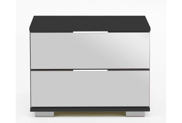 Noční stolek z programu Easy plus nabízí 2 prostorné zásuvky nad sebou. V kombinaci dekoru tmavě šedý grafit a zrcadla.