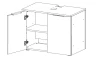- 1. skříňka: 2 x otočné dveře (úložný prostor, 1 x police – výškově nastavitelná)