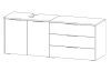 - 2. skříňka: 3 x zásuvka (kovové boční pojezdy)