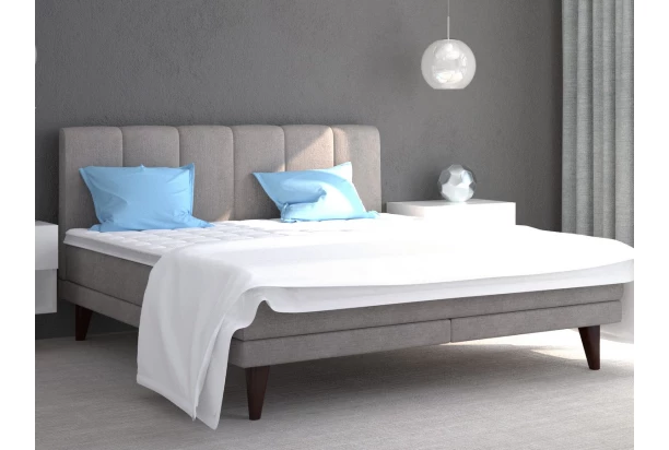 Pohodlná postel s plochou lůžka 180×200 cm zaujme vysokým polstrovaným čelem se svislým proševem. Očalouněna příjemně měkkou látkou v barvě světle šedá. Odolná matrace ze studené pěny se vyznačuje dlouhou životností, elasticitou, prodyšností a poskytuje velmi komfortní spánek.