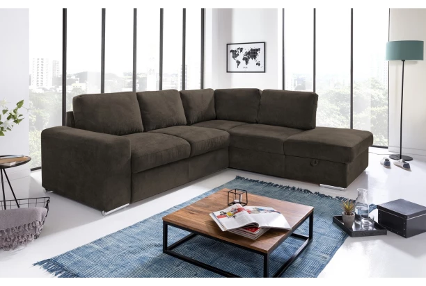 Rohová sedačka Eddi se svým univerzálním stylem hodí do každého interieru a díky svým rozměrům najde své místo téměř v každém rohu místnosti, kde vytvoří pohodlné zákoutí. Rohová sedací souprava je vybavena úložným prostorem pod otomanem a vytváří pravý roh. Je očalouněna příjemně měkkou strukturovanou látkou v odstínu tmavě hnědá espresso. Sedačku lze díky rozkládací funkci snadno proměnit na lůžko pro příležitostné spaní.