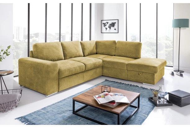 Rohová sedačka Eddi se svým univerzálním stylem hodí do každého interieru a díky svým rozměrům najde své místo téměř v každém rohu místnosti, kde vytvoří pohodlné zákoutí. Rohová sedací souprava je vybavena úložným prostorem pod otomanem a vytváří pravý roh. Je očalouněna příjemně měkkou strukturovanou látkou v odstínu žlutá. Sedačku lze díky rozkládací funkci snadno proměnit na lůžko pro příležitostné spaní.