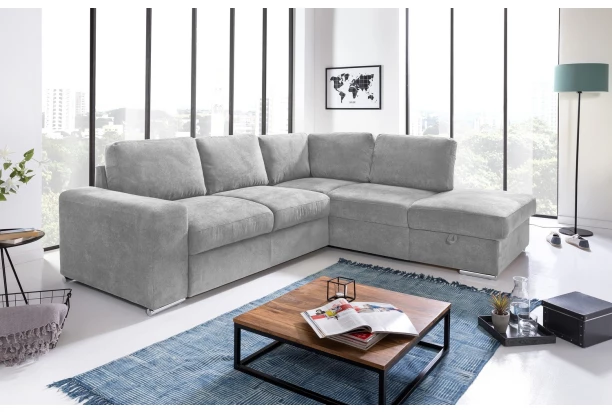 Rohová sedačka Eddi se svým univerzálním stylem hodí do každého interieru a díky svým rozměrům najde své místo téměř v každém rohu místnosti, kde vytvoří pohodlné zákoutí. Rohová sedací souprava je vybavena úložným prostorem pod otomanem a vytváří pravý roh. Je očalouněna příjemně měkkou strukturovanou látkou v odstínu světle šedá. Sedačku lze díky rozkládací funkci snadno proměnit na lůžko pro příležitostné spaní.